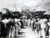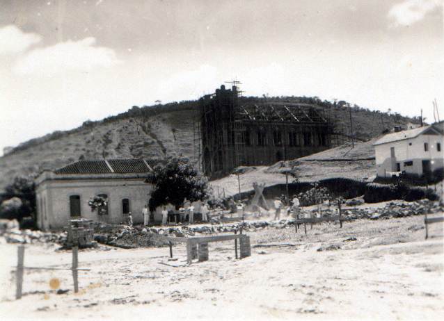construção do Ginásio mostra ao fundo a construção da igreja.